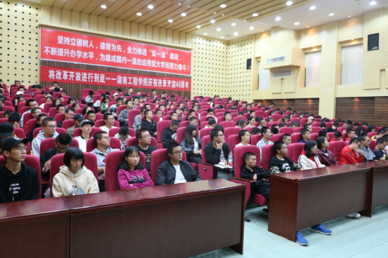 讲座初始,胡爱钦结合自身生活经历,为同学们回顾了40年来改革开放为生活带来的变化,同学们纷纷为生活的巨大改变而惊叹,之后胡爱钦具体为我们讲述了近年来我国改革开放所取得的成就,超级计算机,载人航天飞船,中国“天眼”无不让世界瞩目。同时也指出,改革开放依旧存在不足之处:东西部发展差异巨大,生活困难人口依旧存在,中国高新技术领域还存在许多短板,许多关键材料依赖进口......这需要同学们为之而奋斗改变,胡爱钦对当代中国大学生充满期待。最后胡爱钦讲解了当代中国改革开放所面临的机遇与挑战,号召大家积极投入社会经济变革。变革,是人类推动经济社会发展的重要手段,胡爱钦认为,变革是必要的,如何变革更为重要。努力学习知识,掌握自身专业本领才是变革的根本保障。宣讲会过程中同学们一直在认真倾听,积极思考,现场氛围十分热烈。