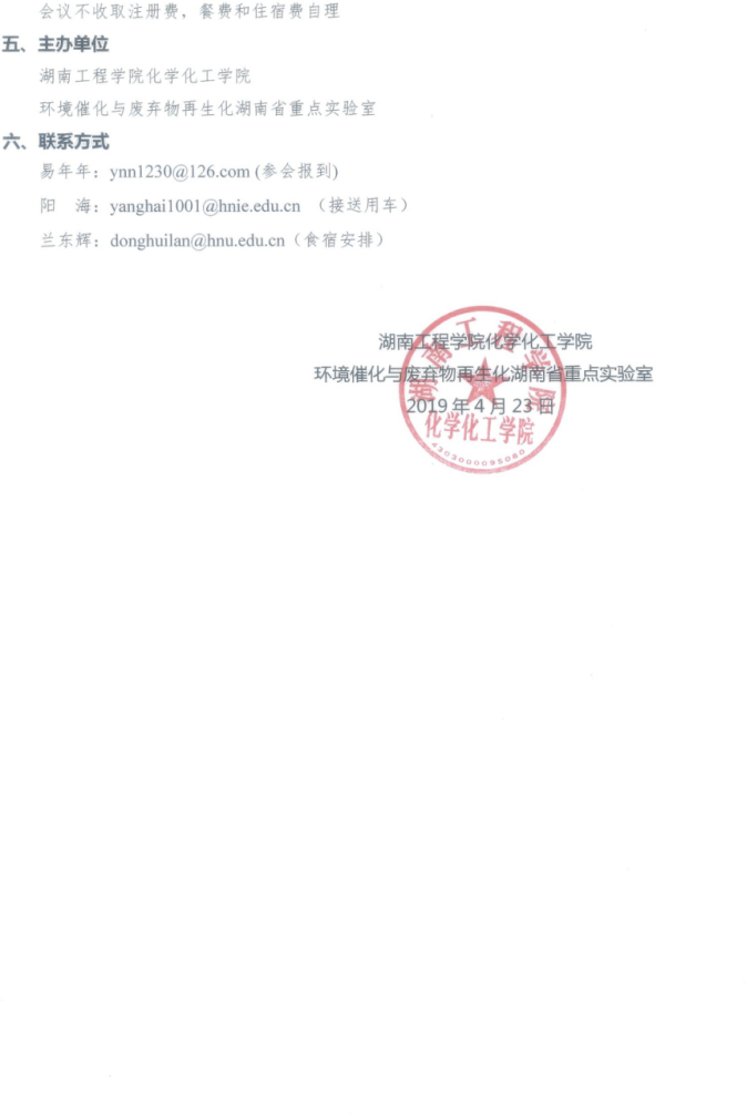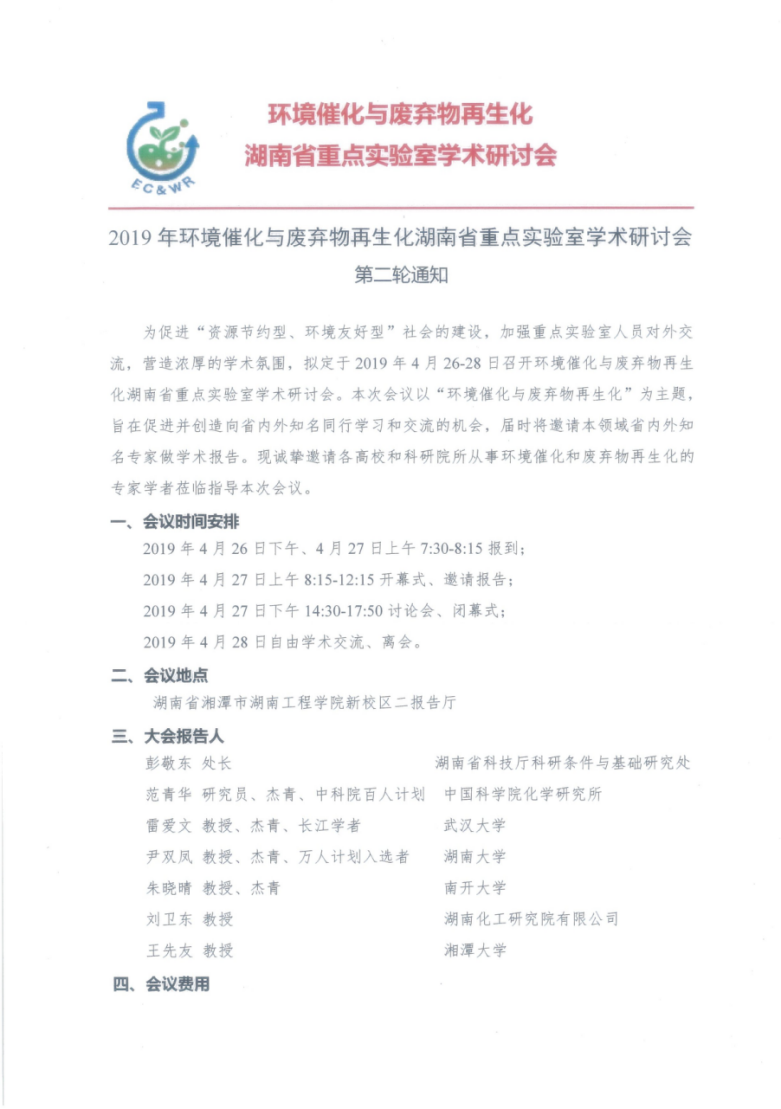 2019年环境催化与废弃物再生化湖南省重点实验室学术研讨会第二轮通知
