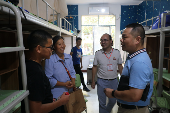 邓继勇一行人首先来到学海10栋,在宿舍中遇到了一位新生家长,邓继勇认真地询问了新生和家长对寝室的看法和建议,又跟新生分享了自己上大学时的宿舍生活,这不禁让同学们感到格外的亲切,原来的拘束一下子就减去不少,新生们也开始分享自己新入学的感受。在交谈中,邓继勇认真解答了关于宿舍管理制度,奖助学金评定等方面的制度。他表示学生如有困难,学校一定会提供帮助。在离开宿舍时邓继勇也对新生们提了几点要求:第一,在大学求学一定要有目标,不能荒废自我;第二,要努力学习,不能在自由的环境下松懈;第三,要常和父母交流,出门在外不能让家人担心。