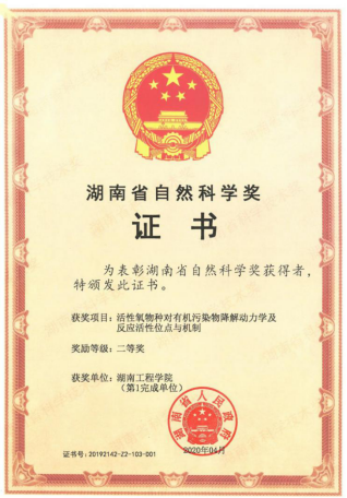 6月10日上午,湖南省科技创新奖励大会在长沙召开。阳海教授受邀出席,由他牵头,联合深圳市环境科学研究院和湖南化工研究院有限公司完成的“活性氧物种对有机污染物降解动力学及反应活性位点与机制”项目喜获2019年湖南省科学技术奖励自然科学二等奖。这是我校首次牵头获得该级别奖项,也是该团队在获得“中国化工学会基础研究成果三等奖”之后,收获的又一个重要奖项。