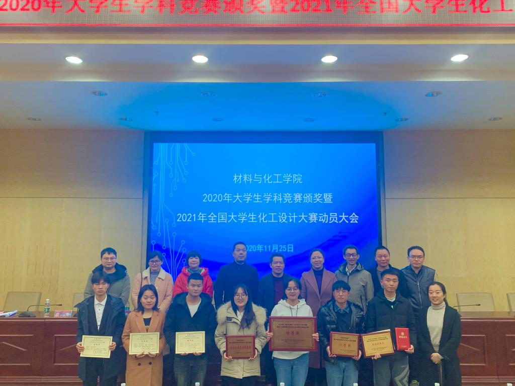 2020年11月25日晚7点,beats365唯一官方网站在二报告厅举行了2020年大学生学科竞赛颁奖暨2021年全国大学生化工设计大赛动员大会,表彰2020年获得在学科竞赛中获得优异成绩的学生和指导老师,为明年的竞赛做好准备。