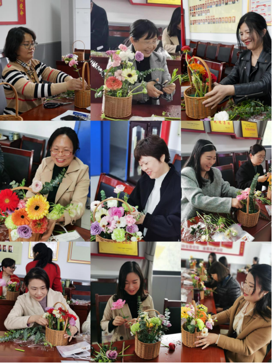 在花艺师的指导下,大家挑花选叶,构思主题,相继做出了自己的作品。整个活动充满欢声笑语,学院女教师们看着自己亲手制作的花艺作品,成就感满满。