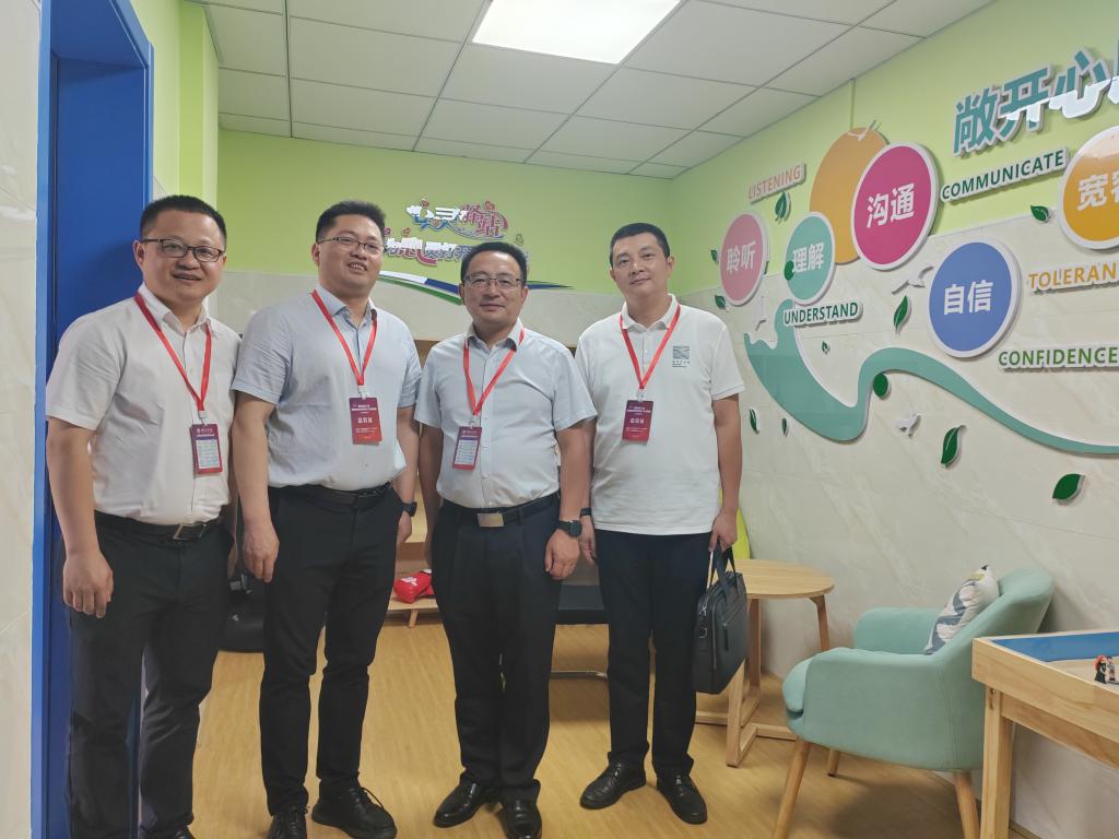 调研中,徐书记对学院的心理健康教育总体开展情况进行了介绍,陈解一行参观了学院的成长辅导室,并对个体咨询室、心理宣泄室、沙盘咨询室等功能室的功能及使用情况进行了详细了解。