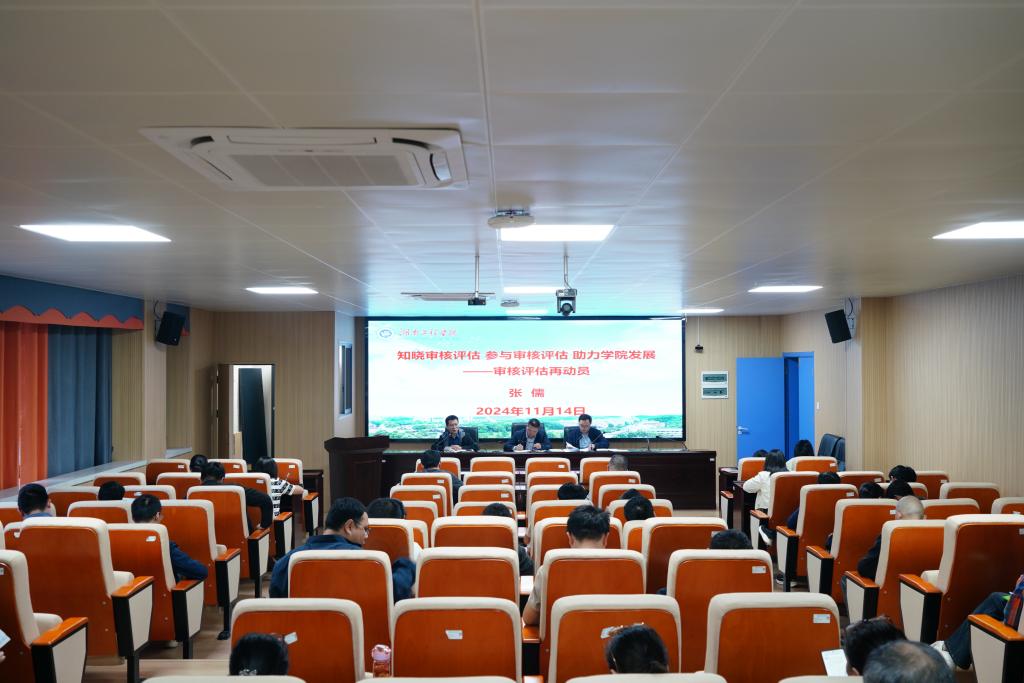 副院长张儒以《知晓审核评估参与审核评估助力学院发展——审核评估再动员》为题作迎评动员报告。报告从历史沿革、办学条件、办学特色、自评自建等四个方面介绍了学校的本科教育教学工作,重点梳理了学院人才培育工作的基本思路、特色、举措、效果,以及在工程应用、产教科教融合、学院文化与办学特色等方面的主要成果,介绍了迎评工作流程和要求,明确了迎评工作的责任和义务,为全院教职工做好迎接审核评估的各项工作提供了有力指导。