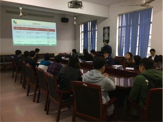 会议伊始,主讲人吴尚富就公司的发展前景,产业结构、地理位置给同学们进行了简单的说明,其中他强调了公司招聘岗位的要求:要有较强的创新能力,能够实现自己的价值,推动社会进步等。随后,彭彦以自身经历告诫同学们,如果能进入公司,一点要踏踏实实地做出成绩,要学会与同事团结互助。紧接着,吴富尚对公司企业文化及发展现状进行了讲解,并对同学们提出的与公司福利、工作薪金有关的问题进行了解答。最后,有意向的同学向公司投递了简历,并当场进行了面试。
