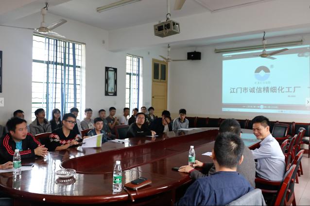 10月22日上午9点,江门市诚信精细发展有限公司携手化学化工学院在四教306举行招聘宣讲会。前来参与此次招聘会的有该公司经理宋文学、公司主管熬先生、化学化工学院老师肖鑫、吴锋景以及化工院部分大四毕业生。