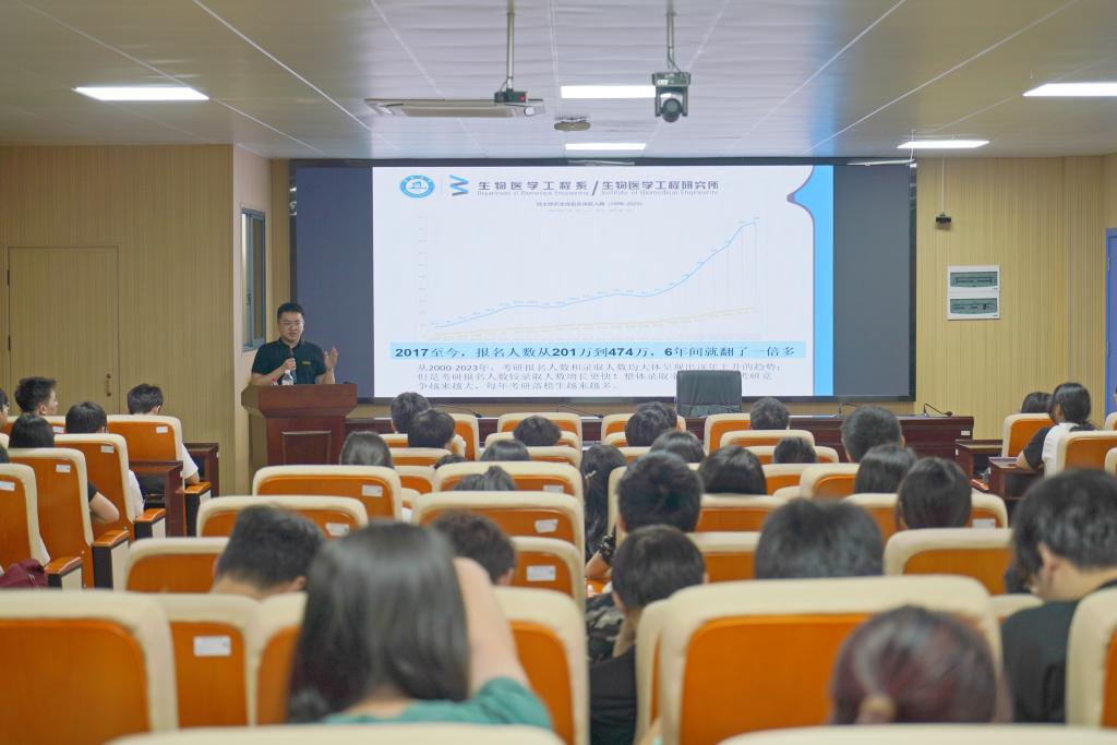 5月8日晚,暨南大学生物医学工程系(所)副研究员唐侨受邀来我院,在材化楼A301报告厅作考研宣讲,吸引100余名师生参加。宣讲会由学院考研专干、辅导员刘思博主持。