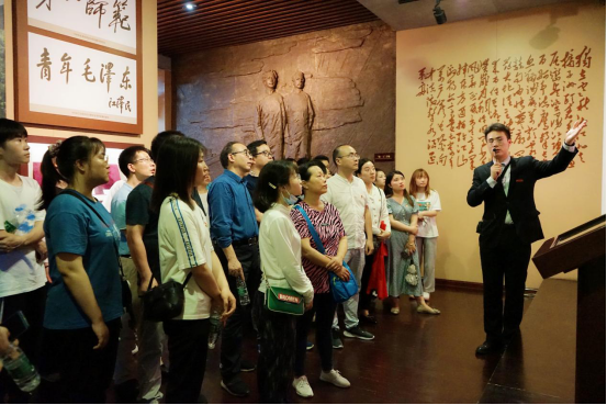 历史文化悠久、文化底蕴深厚的湖南第一师范是中国共产主义运动和新民主主义革命的策源地之一,被誉为中国革命青年的大本营。毛泽东在此求学、工作八个春秋,并在此从事中国共产党的创建等一系列革命活动。顺着庄严古朴的廊道,大家参观了毛泽东与第一师范纪念馆展厅,探寻湖南一师为党的诞生在思想上、组织上做出的突出贡献,追寻他们足迹,缅怀他们功绩,体悟他们风范。