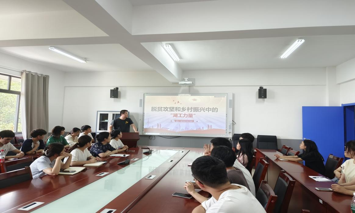 辅导员刘思博以“脱贫攻坚和乡村振兴中的‘湖工力量’”为题讲授微党课。他围绕习近平总书记精准扶贫重要思想,目前取得的脱贫攻坚战决定性成果,联系他自己从2019年12月至今年5月赴怀化市新晃县新村村开展驻村扶贫工作和在怀化市会同县开展乡村振兴工作期间的所见所闻、所思所悟作专题辅导。“为党育人,为国育才”,刘思博激励希望在座的学生党员也要以回应国家建设发展为目标,立志成为栋梁之材;以回应社会健康和谐为目标,践行成为致用之才;一回应人生积极向上为目标,磨炼成为上进之才;以回应时代伟大变革为目标,突破成为创新之才。