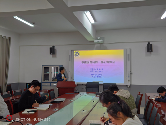 随后,支部邀请学院优秀科研工作者代表胡金龙做《申请国自科的一些心得体会》专题学术讲座,为党员老师申请国家自然科学基金提供帮助,报告之后,与会党员与胡金龙进行了学术交流讨论。