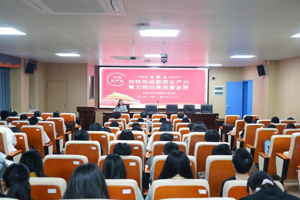 学生第二党支部书记王祥若作题为《加快形成新质生产力着力推动高质量发展》的微党课,着重剖析了新质生产力与传统生产力的区别,以及新质生产力在高质量发展中的重要作用。要求学生党员与时俱进,全面贯彻新发展理念。