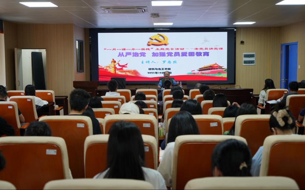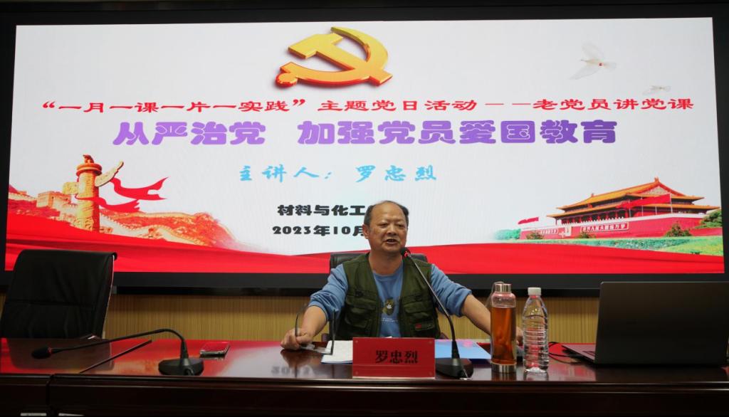 为深入学习贯彻党的二十大精神,激励我院师生党员以新的“赶考”精神、奋楫扬帆的昂扬姿态和矢志奋斗的挺膺担当奋进新征程、展现新作为。10月24日下午,beats365唯一官方网站党委邀请我校原纪委书记、现任校关工委主任、“光荣在党50年”老党员罗忠烈同志在材化楼A301给全院师生党员上了一堂精彩生动的党课,学院100余名师生党员参加。活动由学院党委书记严明主持。