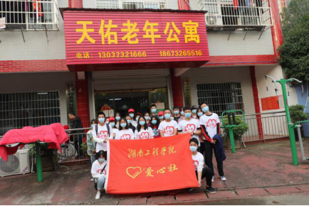 10月20日、25日,湖南工程学院爱心社赴天佑老年公寓开展志愿服务活动。志愿者们来到老人公寓后帮忙打扫卫生,照顾老人的日常生活,和他们一起开展娱乐活动。