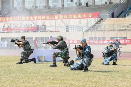 10月10日上午,我校2020级新生军训成果汇报暨总结表彰大会在田径场举行。教官及学院方阵依次以雄健的步伐、响亮的口号、昂扬的士气从主席台前通过,接受检阅;退伍复学老兵首次进行刺杀操、特种战术表演;新生及退伍老兵代表相继发言;校长易兵作军训总结报告。大会为获奖方阵、优秀单位颁发锦旗,我院获多项集体及个人表彰。