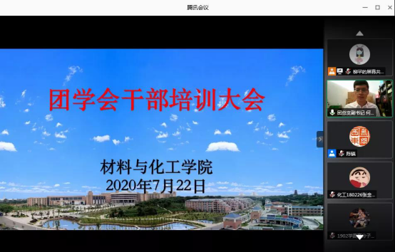 7月22日,学院举行团学会干部培训大会,学院党委书记李艳红、副书记陈镇、全体辅导员及老一届学生干部代表、新一届团学会干部在线参会。会上,易苏主任宣读团学会主席团及主要干部名单,原团总支副书记生物1701班赵卓和新一届学生干部代表现任团总支副书记应用化学1801班何清海发言。随后,陈镇和李艳红分别讲话,并对学生干部提出具体希望和要求。