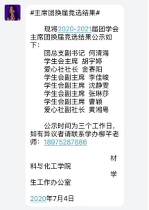 7月3日,学院2020-2021届团学会主席团换届竞选大会采用线上方式举行。学院党委书记李艳红、副书记陈镇、全体辅导员、上一届主席团成员、竞选人及现任干部、干事、各班级主要班委参加了大会。通过线上竞聘演讲,主要考察了竞选人的基本情况、竞聘优势、工作计划等。最后选举出以何清海为团副的八人主席团。