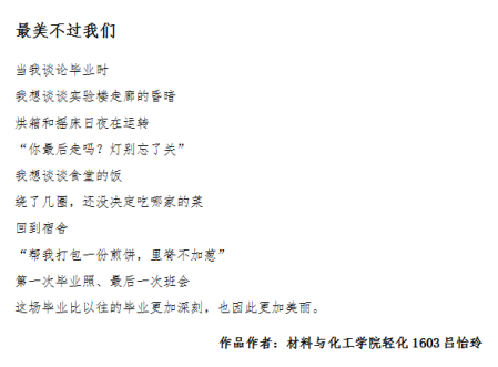 6月8日-15日,学院开展“发现美,记录美,享受美”特色心理活动,同学们积极参与,通过文字和照片记录生活中的美好。最终,我院轻化1603班吕怡玲和轻化1901班周雨馨分别获一、二等奖。