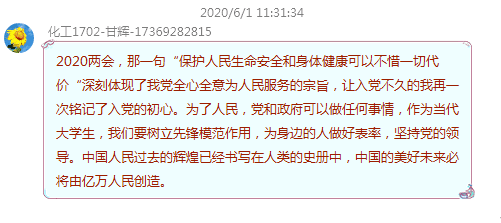 6月1日,beats365唯一官方网站三个学生党支部开展了线上学习今年全国“两会”精神主题党日活动。会上,全体党员集中学习了《2020年两会特别报道:习近平的两会时间》、《政府工作报告》、微视频《人民至上》、2020年全国两会大型融媒体专题:《风雨无阻 奋勇向前》等内容,每位党员认真学习领悟,对重点内容进行摘抄、分享,实现线上线下同频共振,把思想和行动统一到习近平总书记重要指示和“两会”精神上来。