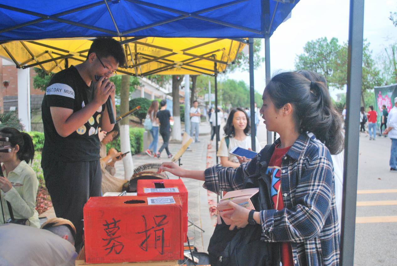 以声传情,以情动人。明德街角,我们吹笛鸣萧、拨弦奏琴,悠悠乐声,直抵心灵;木鱼湖畔,我们弹唱民谣、击鼓怡情,人景合一,画面如诗;学海树荫下,我们动情歌唱青春热血,用歌声传递心底的炙热,传递爱。两天的活动吸引了一大批同学驻足咨询。在爱心社干事的耐心讲解下,同学们了解到“一元捐”能帮助到希望工程的孩子们,并积极捐款,有的豪掷重金,有的捐了仍然愿意慷慨解囊,还有的号召同伴一起捐款。同学们小小的举动,却有着大大的温暖,令人动容。经过大家共同的努力,最终此次“一元捐”爱心义演活动共募得善款1942.51元。所募善款将通过化学化工学院团总支全数上缴至湘潭市希望工程促进会,市希望工程促进会汇集后统一上缴省青基会“希望工程一元捐助学基金”。