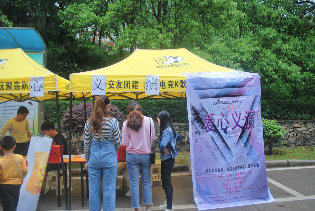 为响应共青团湘潭市委、湘潭市希望工程促进会等号召,化学化工学院积极组织开展希望工程“一元捐”活动。4月20-21日,由湖南工程学院爱心社联合民族乐器协会、歌友协会、焦点音乐开展的“一元捐”爱心义演活动在明德二食堂门口、木鱼湖公园、学海二食堂门口同时摆点进行。