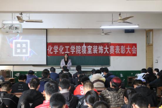 2017年12月10日上午九点半,化学化工学院于四教209举行了寝室装饰大赛表彰大会。监治部部长郭易担主持人,学办老师李娥君出席大会。