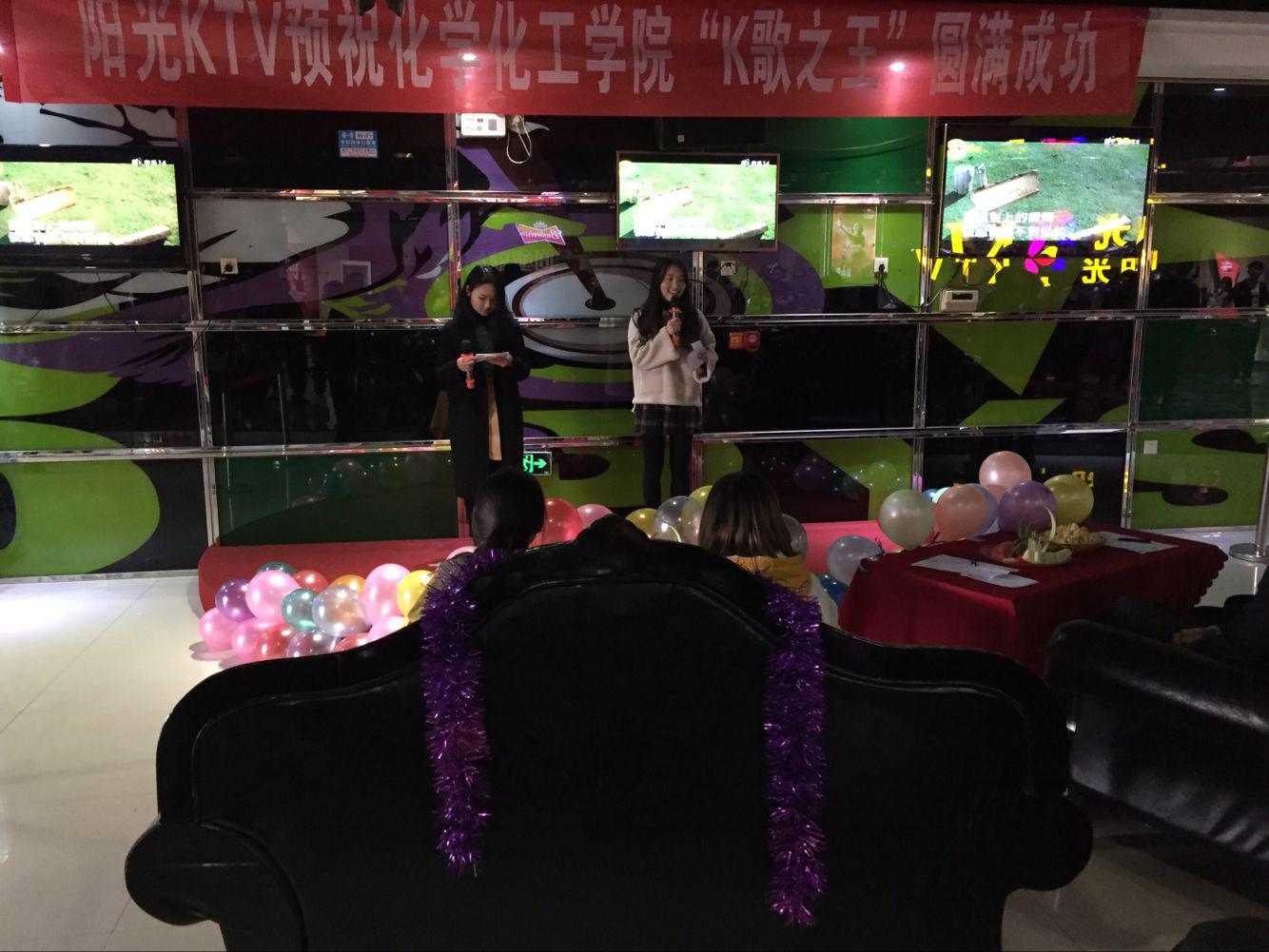 2017年3月25日下午两点,化学化工学院于阳光KTV举行了“k歌之王”校园歌唱大赛初赛。担任此次大赛的评委分别有化学化工学院2014、2015届K歌大赛的冠军以及阳光KTV总经理欧阳旻昊。