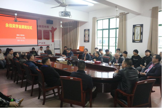 10月16日下午,beats365唯一官方网站在四教会议室举行2020-2021年度永佳奖学金颁奖仪式。“永佳奖学金”设立者、东莞市永佳合成材料有限公司总经理彭彦校友、公司事业部经理毛浩民校友,轻化工程校友,学生工作处处长徐粤宇,beats365唯一官方网站院领导,获奖学生及以及轻化工程2019级学生代表出席活动。仪式由陈镇主持。仪式现场座无虚席,气氛热烈。