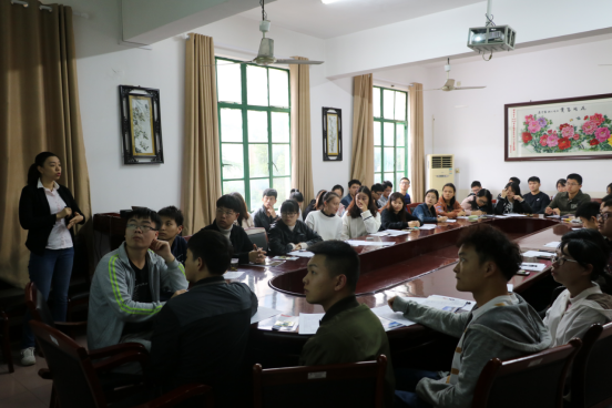 下午4点30分招聘会准时开始。会议前,周女士放映了关于湘江涂料集团的介绍视频,并分发公司简介。会议时,主讲人周女士采用PPT的形式,从公司概况,历史业绩,薪资水平,员工福利,销售市场,研究产品等方面向同学们介绍了公司的基本情况。在国际上,湘江涂料集团在2018年亚太涂料企业25强排名第九位,2018年世界涂料企业100强第25位。公司不仅有广阔的销售市场,前沿的技术产品,而且对员工的福利也是很优厚的。就业前有全面的专业知识培训,工作之余还有兴趣班,十分适合大学生就业。招聘会后,周女士组织有意向的同学进行了笔试。
