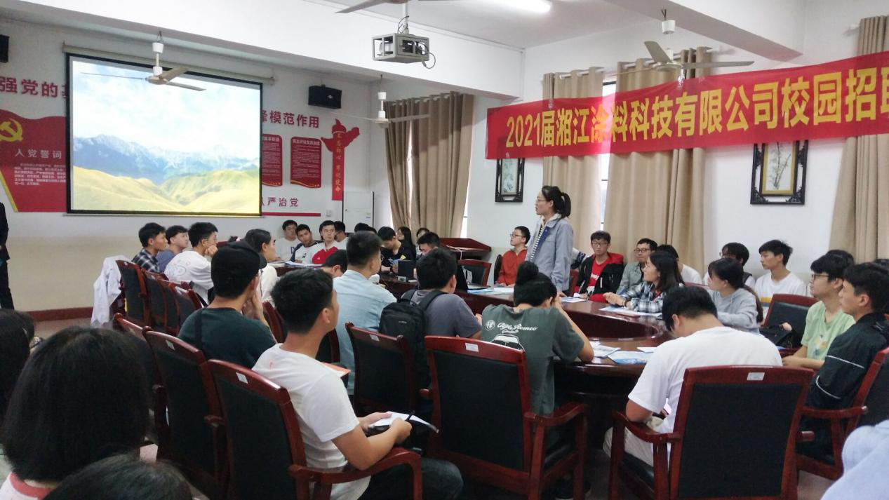 9月21日下午,湘江涂料集团有限公司于我校4教306举行招聘会。由该公司经理成迎作为主讲人,此次招聘会主要面向我院应用化学、化学工程与工艺、高分子专业等应届毕业生,共有59人参与了此次招聘会。