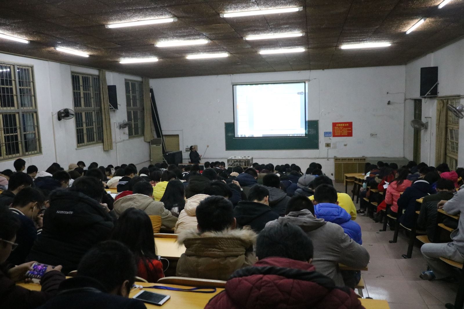 胡爱钦书记以“汇聚在中国共产党的旗帜下”为题,列举革命烈士的英勇事迹,指出中国共产党的牺牲与奉献精神,我们应当以此为榜样,为振兴祖国、建设祖国贡献我们的青春力量。随后,易苏向同学们讲述了共青团湘潭市第十六次代表大会的大致内容,并指出“青年的气质、美感和去留决定了城市的气质、美感与兴衰,同时表达了希望我们大学生能乐学修身、树立正确目标的美好愿望。随即又进行了一场风险防范专项教育,易苏为我们介绍了校园贷的危害,再三叮嘱我们应该抵制校园贷款,提升自己的财产安全防范意识,不因校园贷而酿成惨剧。最后,他还给我们讲了宿舍陆续发生使用大功率和被盗、失窃等问题,这类事件的发生警示着我们要时刻注意寝室安全,以确保自身及财产安全。