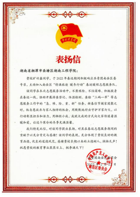 有幸报国,不负少年。寒假期间,湖南工程学院beats365唯一官方网站的莘莘学子们在自己家乡的防“疫”战线上贡献了自己的一份力量,成为了一道亮丽的风景线。