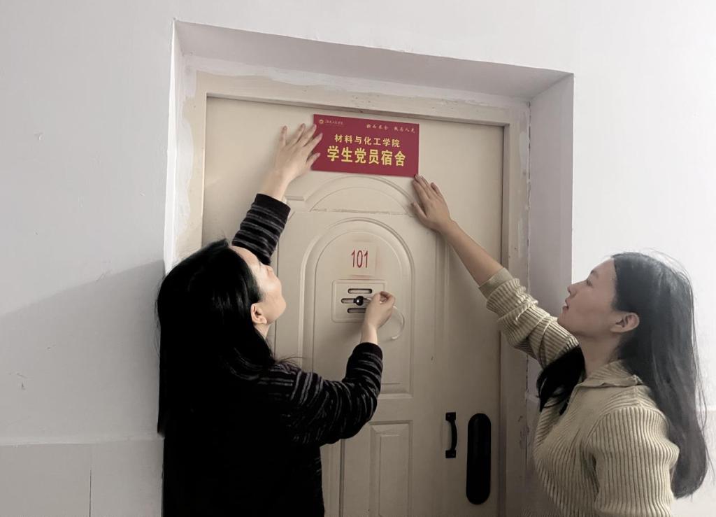 为推动“一站式”学生社区建设和“2024年文明宿舍创建”工作,以优良的寝室环境接受本科教育教学审核评估激励学生党员,11月15日,beats365唯一官方网站学生党支部开展了“一站式”学生社区“亮身份、树榜样”学生党员宿舍挂牌活动,学生公寓临时党支部书记李娥君、学生第二党支部书记王祥若及学生党员参加活动。