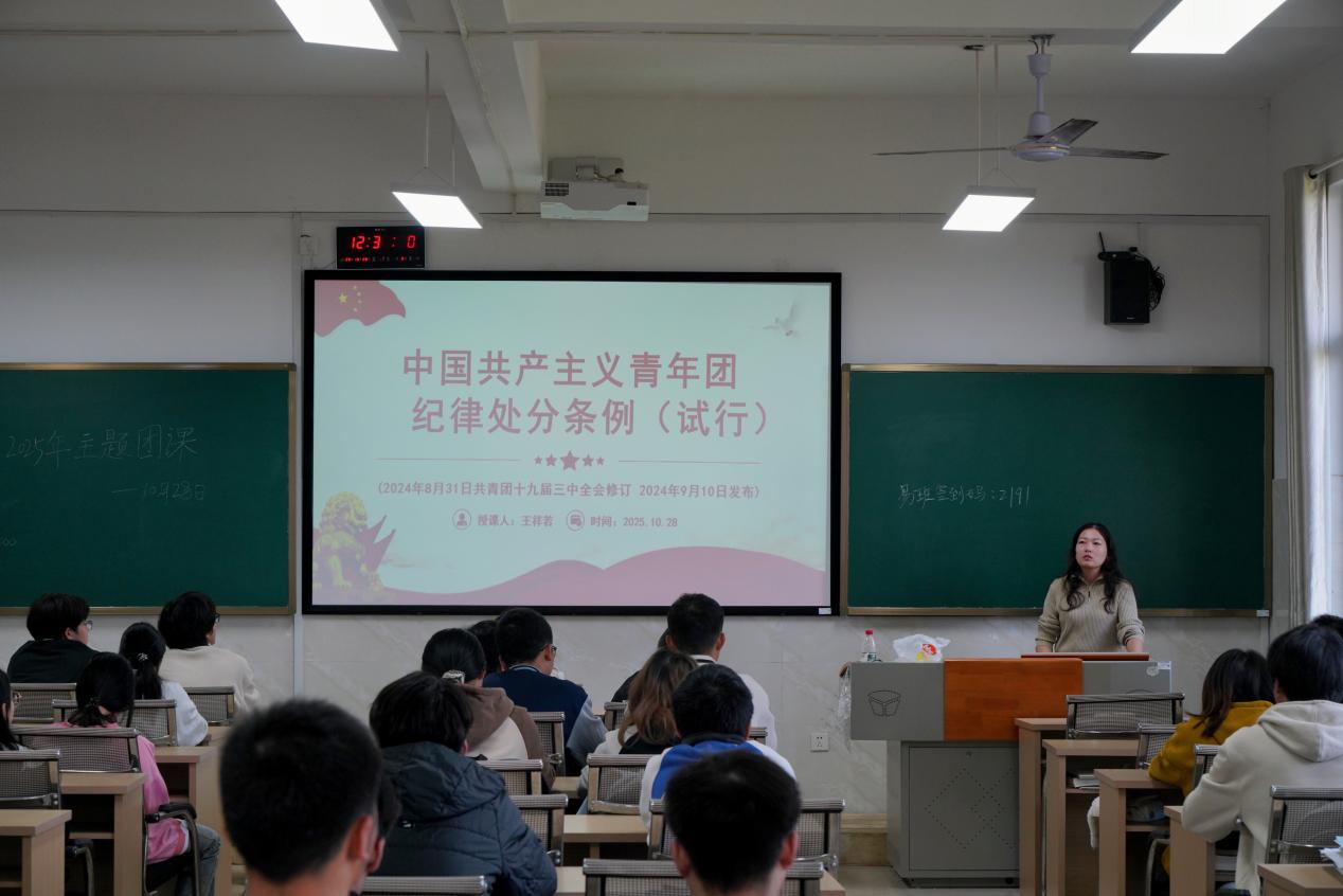 为深入学习贯彻《中国共产主义青年团纪律处分条例(试行)》,进一步增强团干部和广大团员的纪律意识,筑牢廉洁自律思想防线,10月28日中午,beats365唯一官方网站团委在材化楼A602召开团支书大会,并开展2025年主题团课。本次团课由学院团委书记王祥若主讲,各年级团支部书记、入团积极分子参加学习。