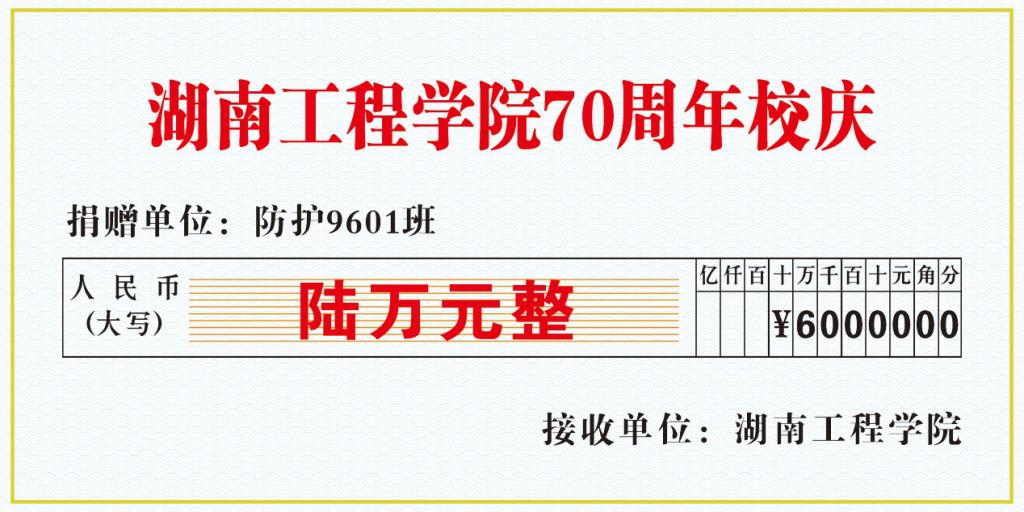 在母校迎来建校70周年之时,带着对母校深深的热爱与眷恋,带着对学弟学妹的殷殷期盼与关怀,防护9601班的同学们发起班级捐款6万,为母校带来一份温暖的祝福。