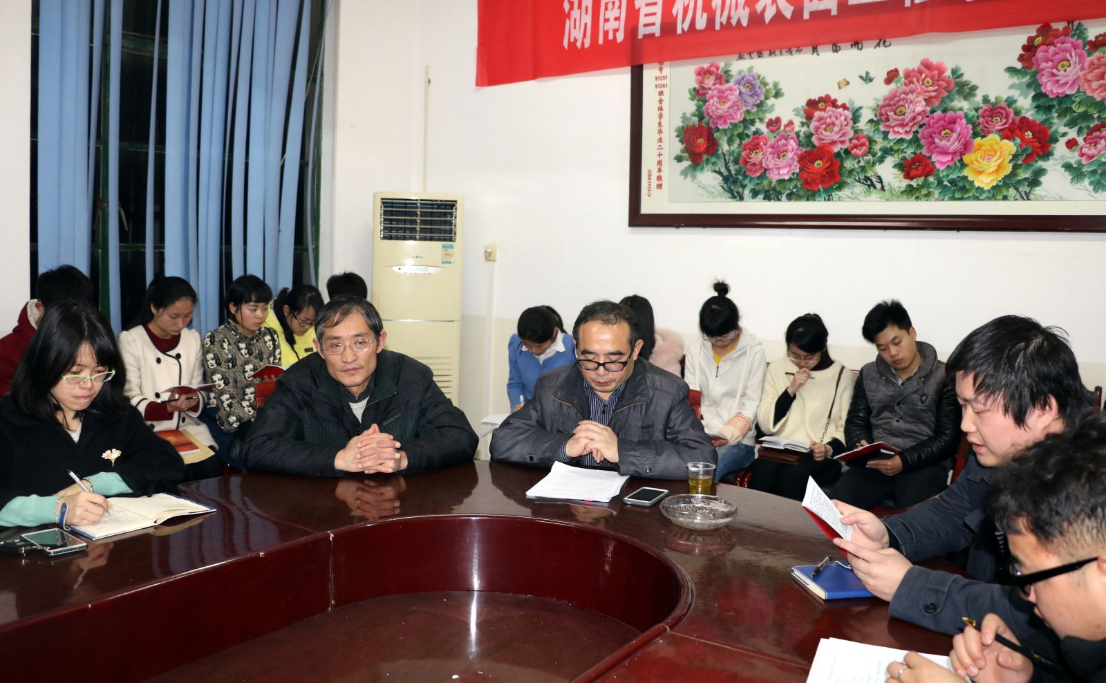 3月23日晚7点,化学化工学院学生党员在四教306召开了党章集中学习会议暨民主评议会。化学化工学院党支书记胡爱钦、副书记张建国出席会议。学生一支部书记李芳郴、二支部书记易苏、三支部书记刘思博老师以及化学化工学院全体在校学生党员参加会议。本次会议由李芳郴主持。